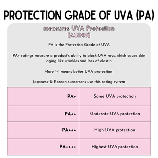 PA stands for "Protection Grade of UVA Rays." The system consists of four grades: "+," "++," "+++," and "++++." More plus signs indicate greater effectiveness in protecting against UVA rays, which penetrate...